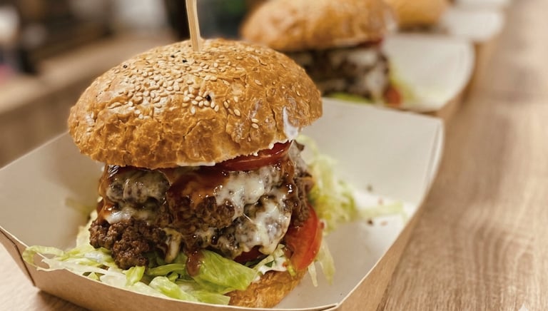 Zjedz u nas świeżo przygotowanego burgera w przytulnej atmosferze.